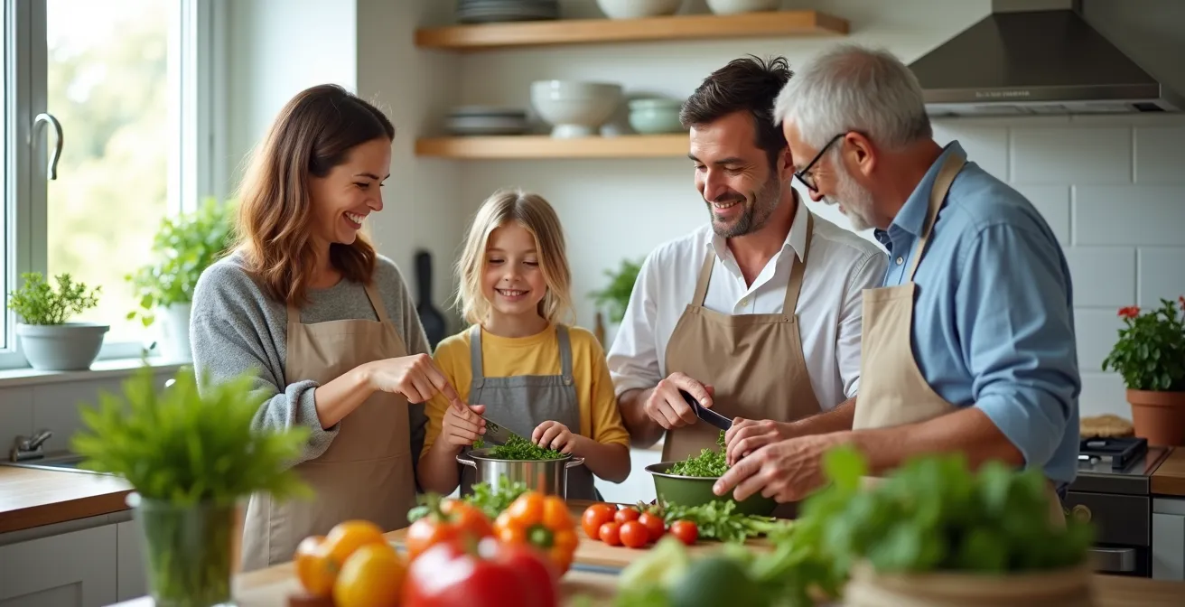 Este enfoque funciona porque combina estructura con autonomía. Los niños y la pareja saben qué esperar (por ejemplo, que el jueves toca pasta), pero aún tienen poder de decisión sobre el resultado final (elegir entre salsa de tomate o pesto). Involucrar a la familia en la planificación es el siguiente paso. Puedes crear un sistema donde cada miembro tiene derecho a un «veto» y a una «propuesta» por semana, asegurando que sus platos favoritos aparezcan en el menú. Esto no solo garantiza que haya algo que les guste a todos, sino que también les hace partícipes y responsables del proceso.